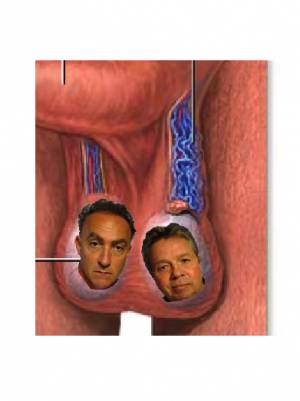 This x-ray of testicles taken at an Ontario University revealed something odd. It appears there's a terrorized man inside. Humble and Fred have similar pictures.